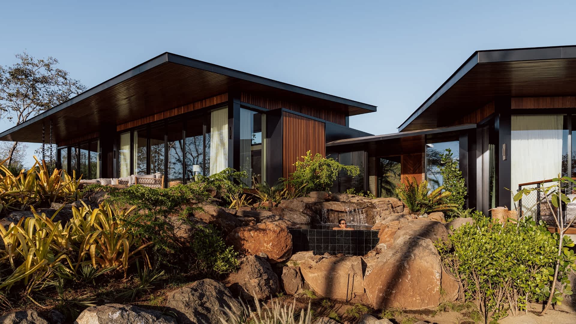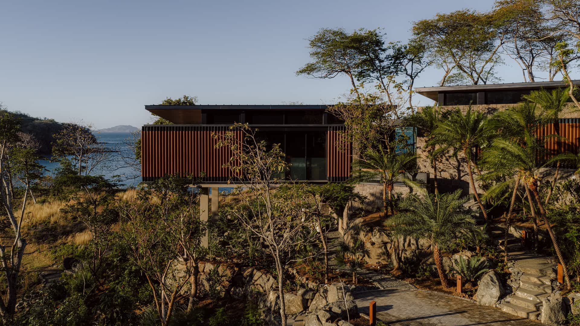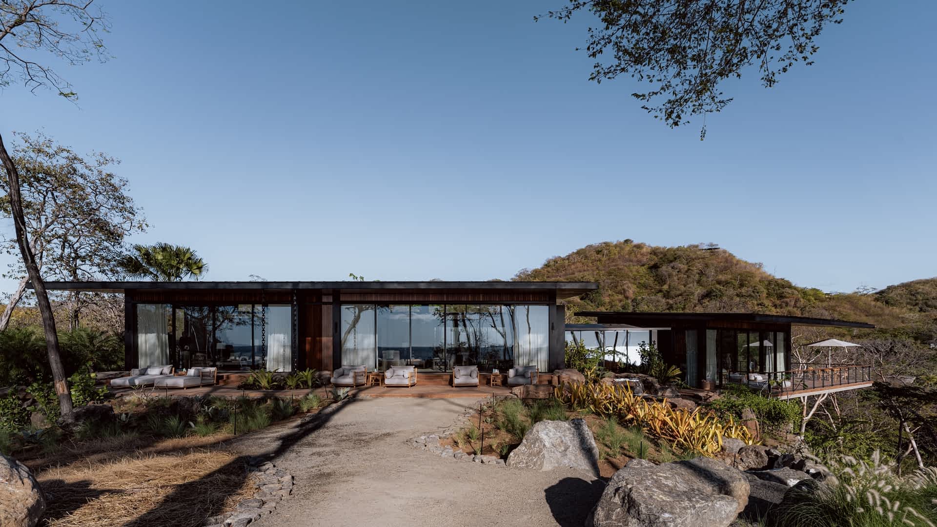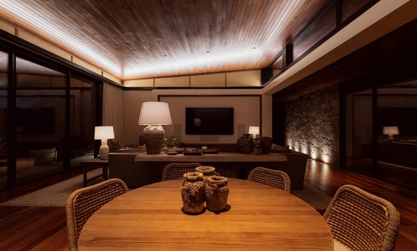Completed in 2025, this 1,468 m² residence is organized as a series of low-profile volumes that follow the contours of the landscape. Expansive overhangs, deep terraces, and floor-to-ceiling glazing dissolve the boundaries between interior and exterior, allowing light, vegetation, and distant views to become integral elements of the architecture.